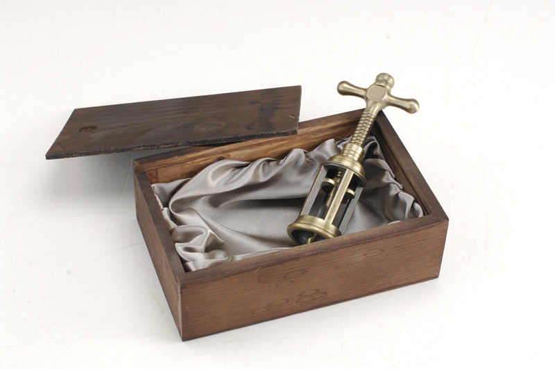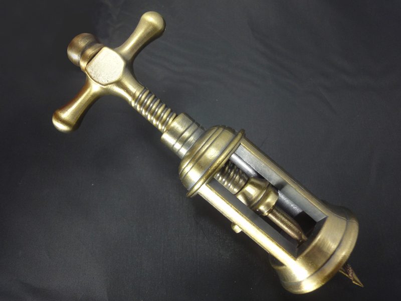 Denna vinöppnare erbjuder en unik avvikelse från konventionell design, med två framstående element: dess antika mässingspatina finish och den spiralformade korkdragmekanismen. Den åldrade ytan framkallar en känsla av tidlöst hantverk, medan den innovativa spiraldesignen säkerställer enkel och elegant avkorkning.
