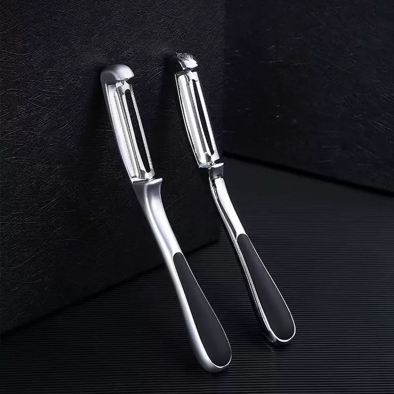 Denna förstklassiga rakbladiga grönsaksskalare av zinklegering är en del av en serie produkter designade av Hanjia, som inkluderar bland annat vinöppnare, isskedar, köttmörning, nötknäppare, vitlökspressar, pizzaknivar och ölöppnare. Denna designstil är väl lämpad för hemvarubutiker, stora stormarknader och butiker på grund av dess utmärkta balans mellan estetik och funktionalitet, såväl som dess kostnadseffektivitet. Den här serien har redan fått betydande beställningar och har tagits emot väl av konsumenterna på marknaden, vilket visar sin popularitet och tillförlitlighet.